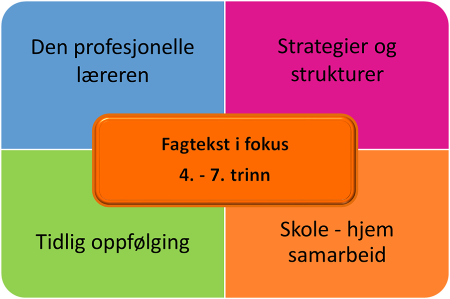 I undervisningen arbeider elevene med ulike fagtekster i fagene norsk, matematikk, RLE, engelsk, naturfag og samfunnsfag. Det arbeides med de grunnleggende ferdighetene i hver undervisningsøkt.